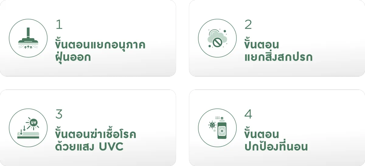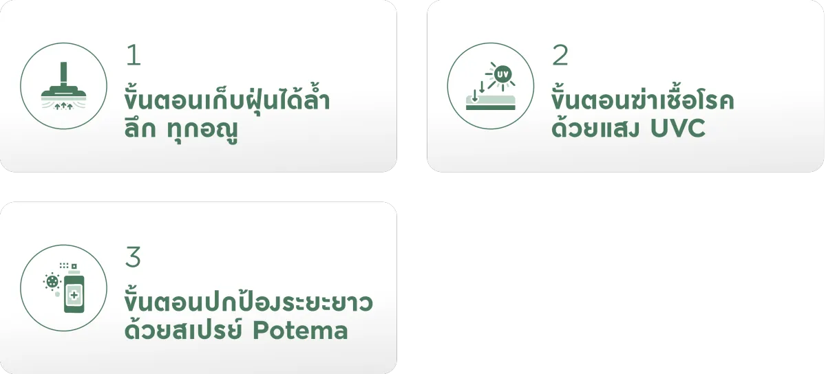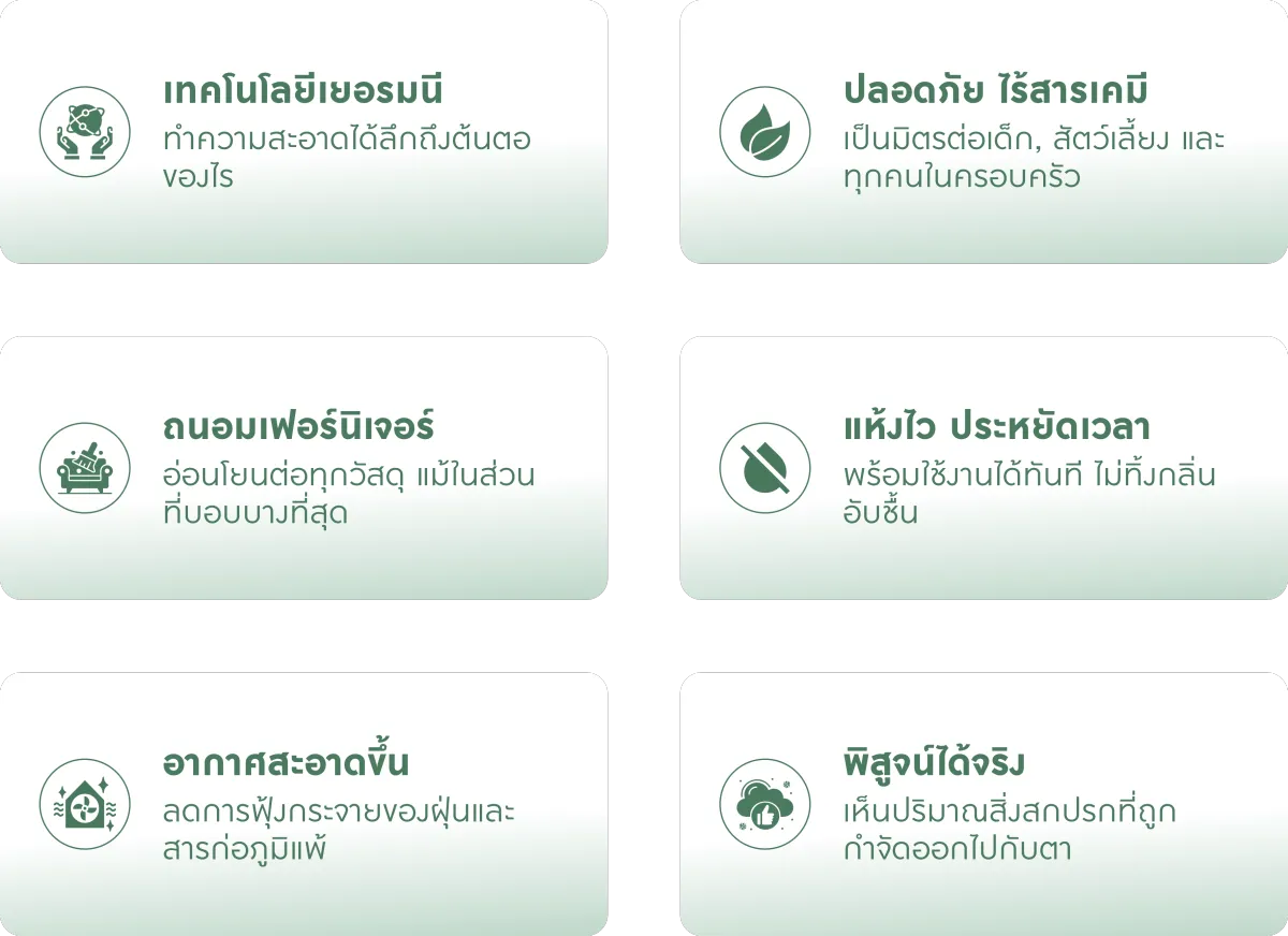 ได้ผลอย่างแน่นอน นี่คือความเชี่ยวชาญหลักของเรา การทำความสะอาดเชิงลึก ด้วยเทคโนโลยีจากเยอรมนี สามารถกำจัดไรฝุ่น,