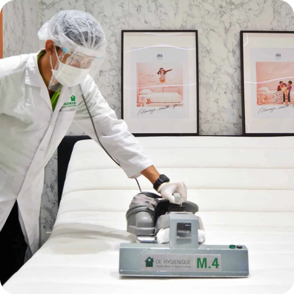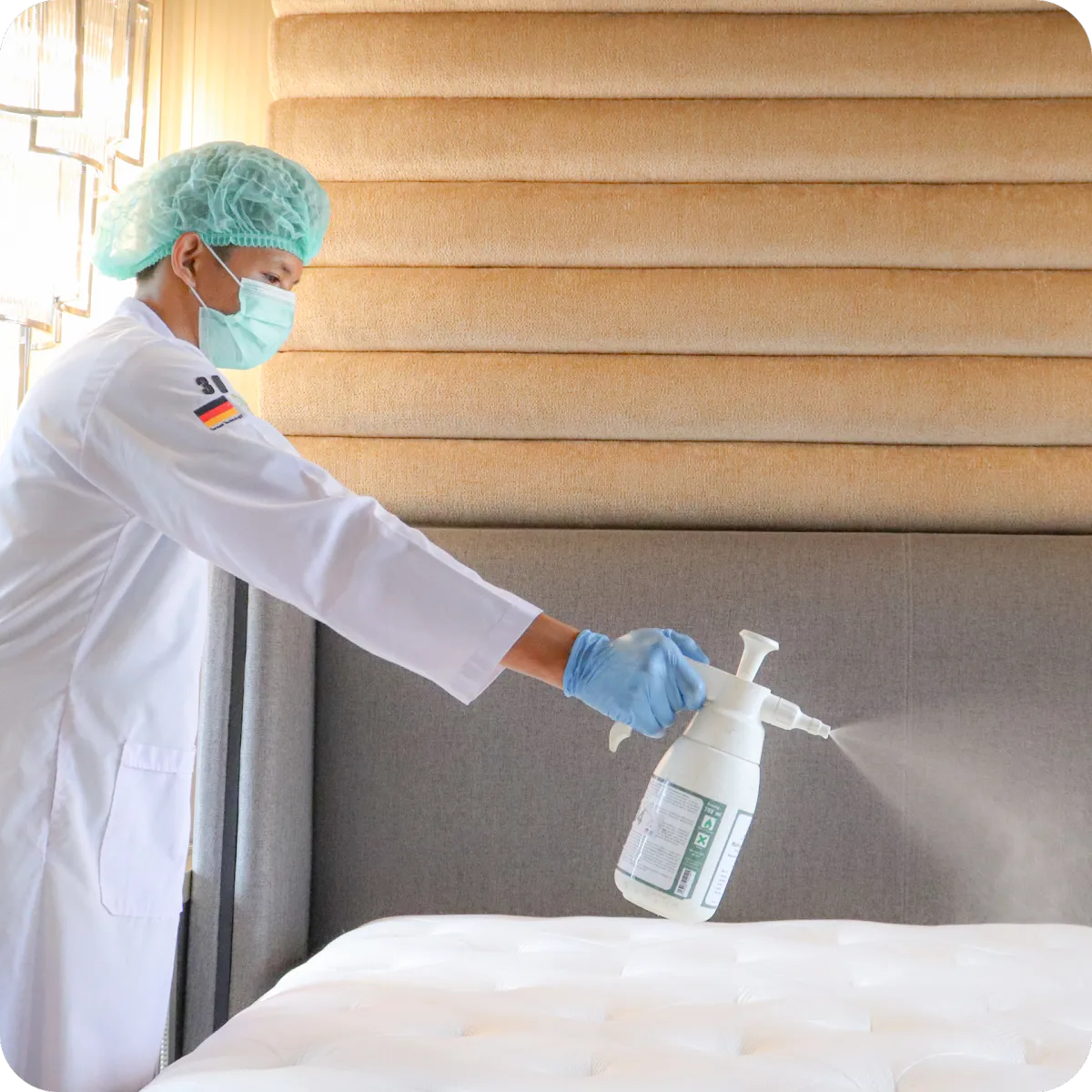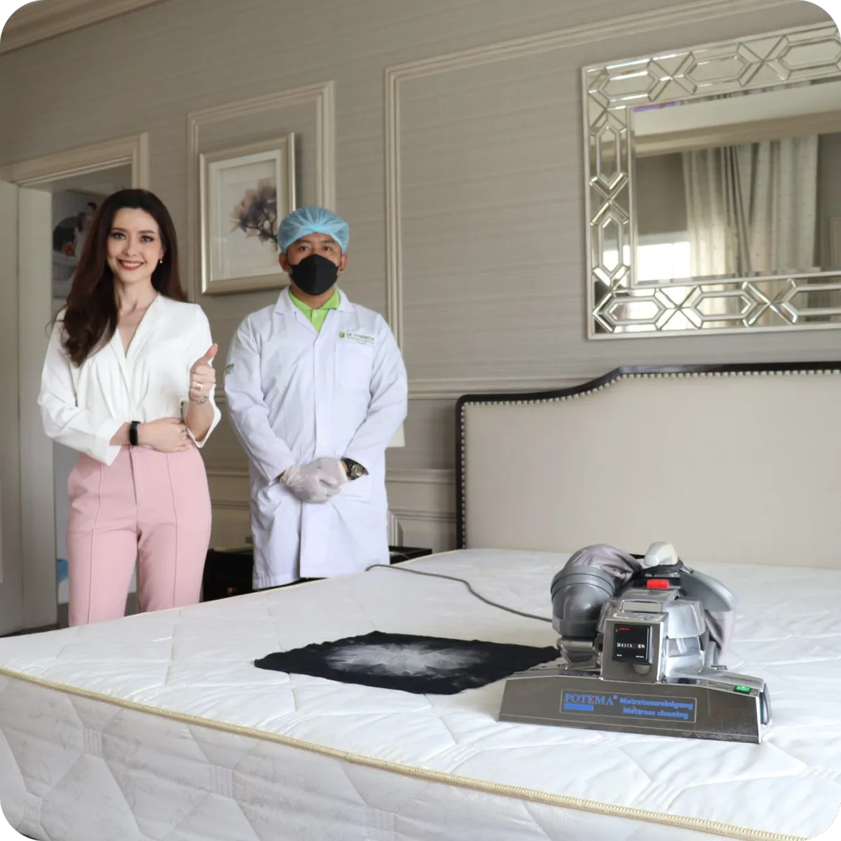 เป้าหมายหลักของเราสำหรับที่นอน คือการทำความสะอาดเชิงสุขอนามัยครับ เราเน้นการกำจัดภัยเงียบที่มองไม่เห็น เช่น ไรฝุ่นและเชื้อโรคที่ฝังลึก